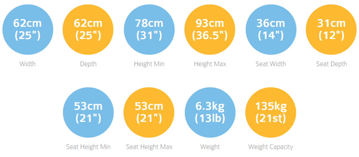 · Rustproof, robust aluminium frame provides longevity and stability and is also very light to manoeuvre and transport.