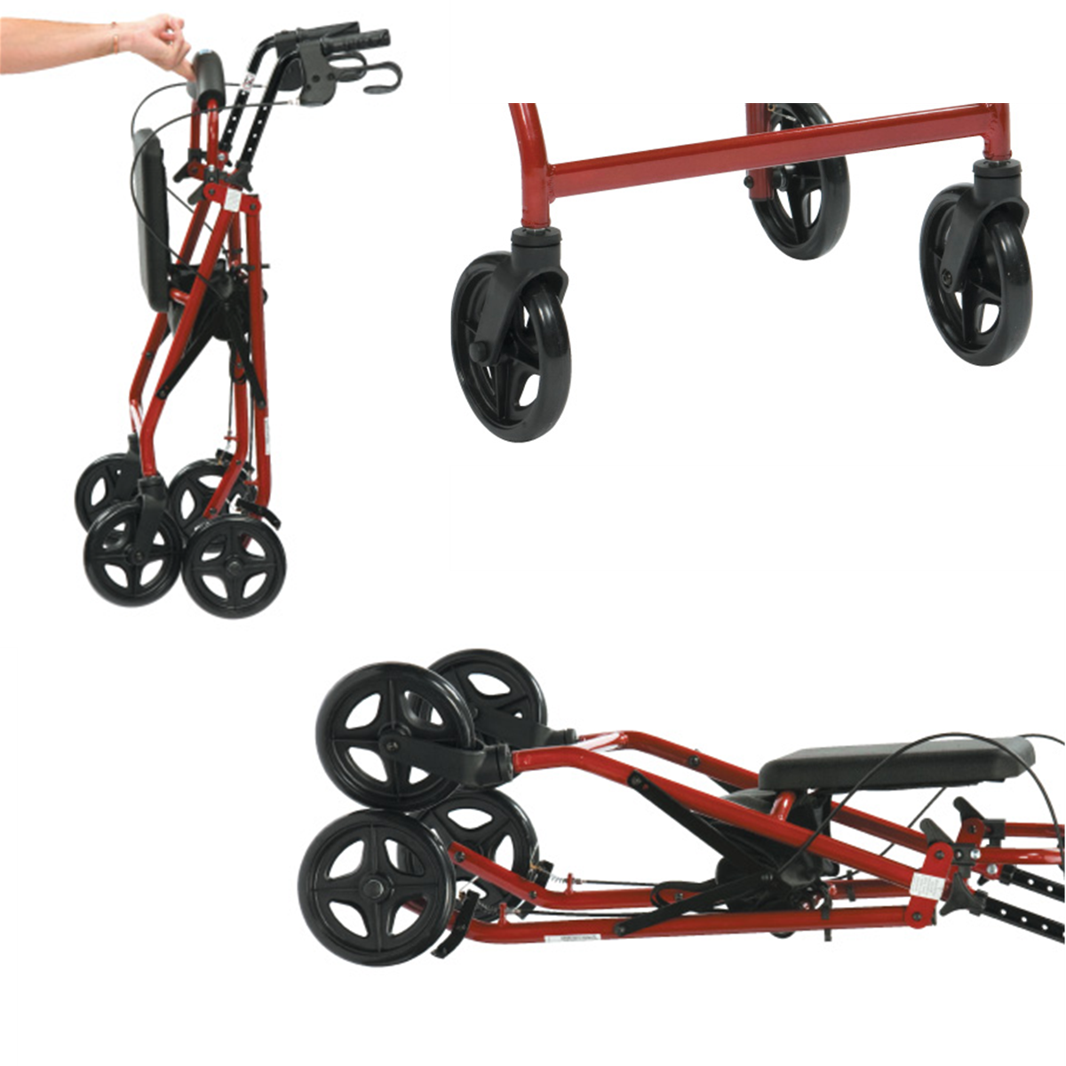 · Padded rest seat flips up easily for access to storage bag (supplied) or for folding.
