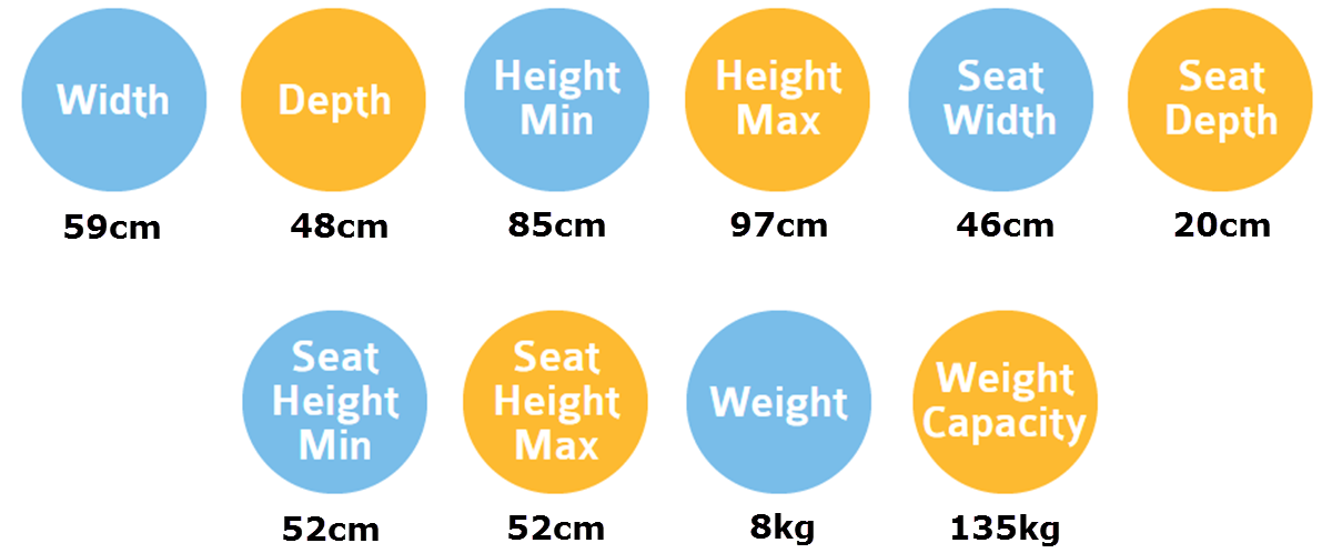 STEEL Elevating Leg support, 56cm seat width. Suit 125kg user.